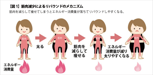体はタンパク質不足に陥り、筋肉が維持されず、さらに代謝が落ちることになります。